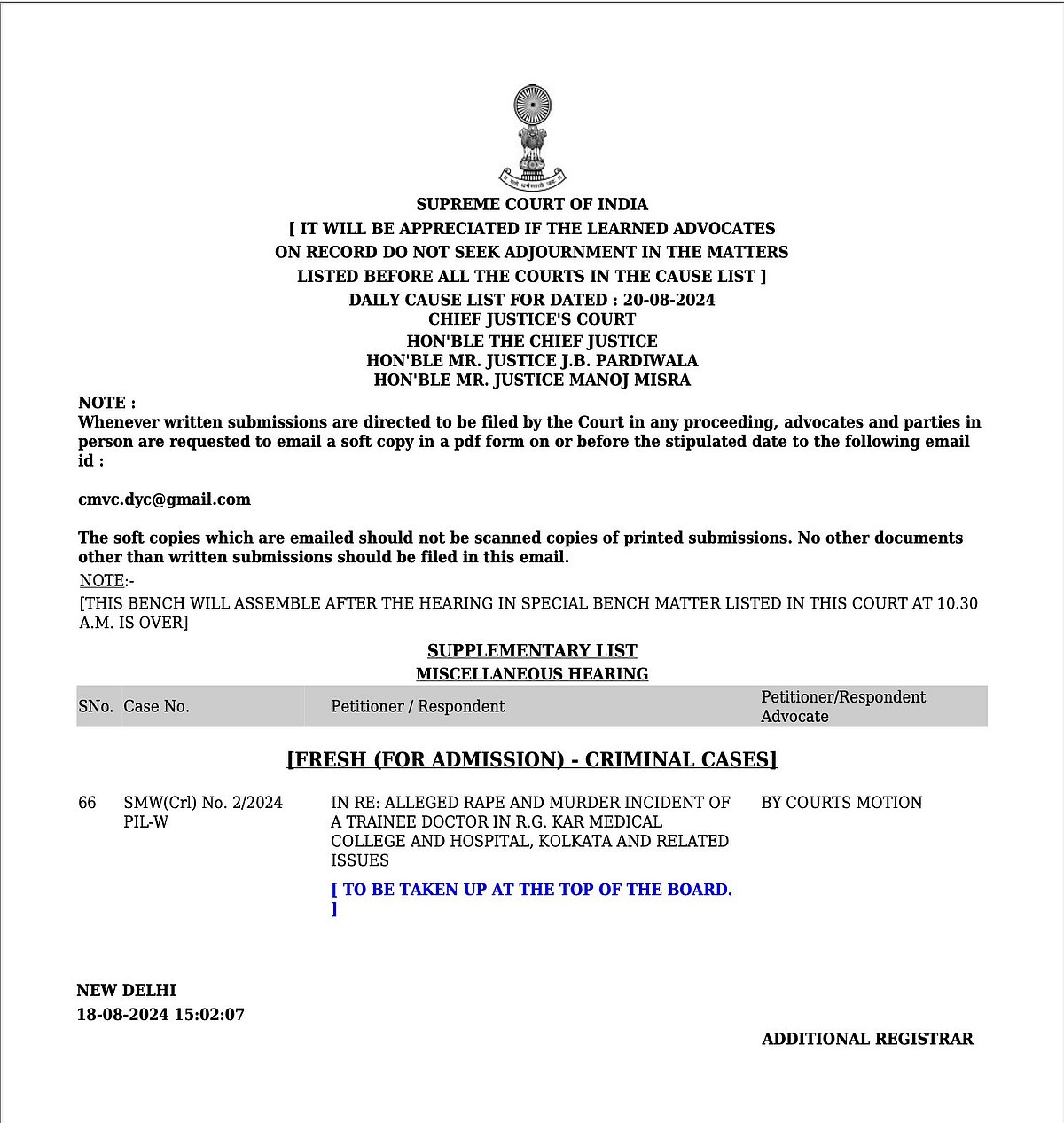 SUPREME COURT ORDER : https://api.sci.gov.in/supremecourt/2024/37351/37351_2024_1_1_55004_Order_22-Aug-2024.pdf